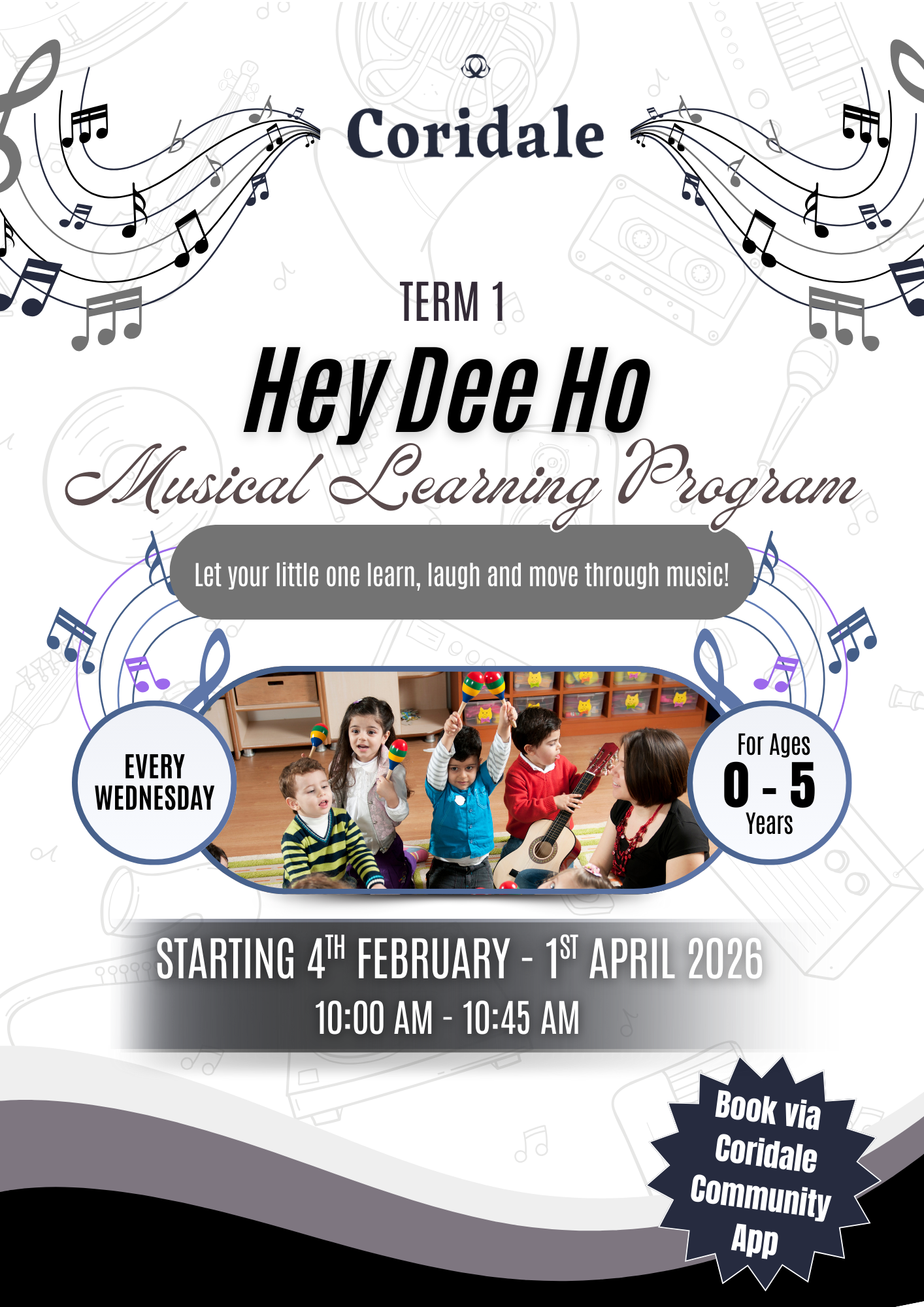 Introduce your child to the joy of music through the Hey Dee Ho Music Program at Club Coridale!